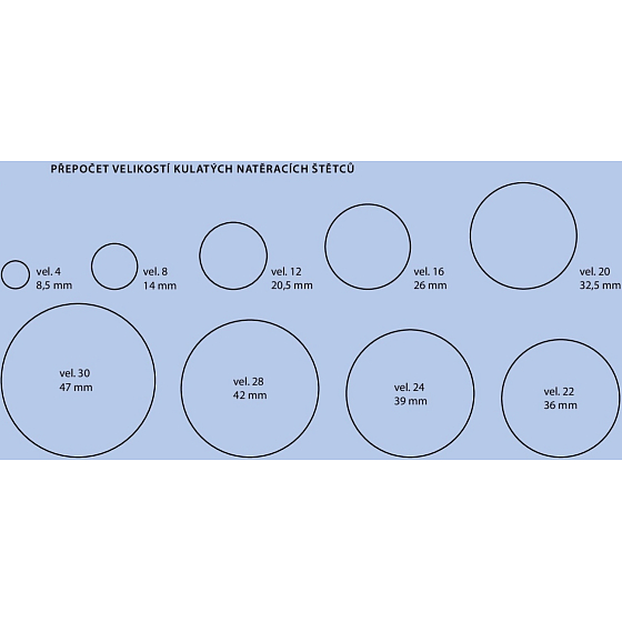 Bei Flachpinseln gibt die Dimension die Breite des Pinsels an bzw. dessen Größe in Zoll, bei runden Pinseln werden die Größen traditionell durch eine Zahl gekennzeichnet, die keinen direkten Bezug zum Durchmesser des Pinsels hat (siehe Abb.).