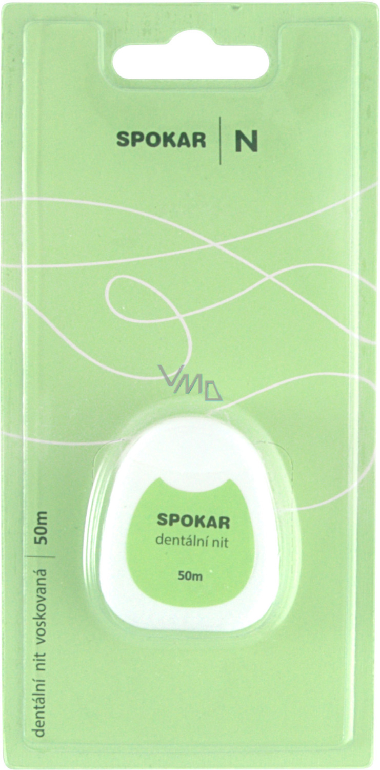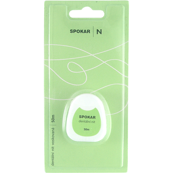 Spokar gewachstes Zahnseide zur Reinigung der Interdentalräume. Verhindert die Bildung von Zahnbelag, der Entzündungen und Erkrankungen des Zahnfleisches verursacht. Länge 50 Meter. Die Zahnseide hat eine gewachste Oberfläche.