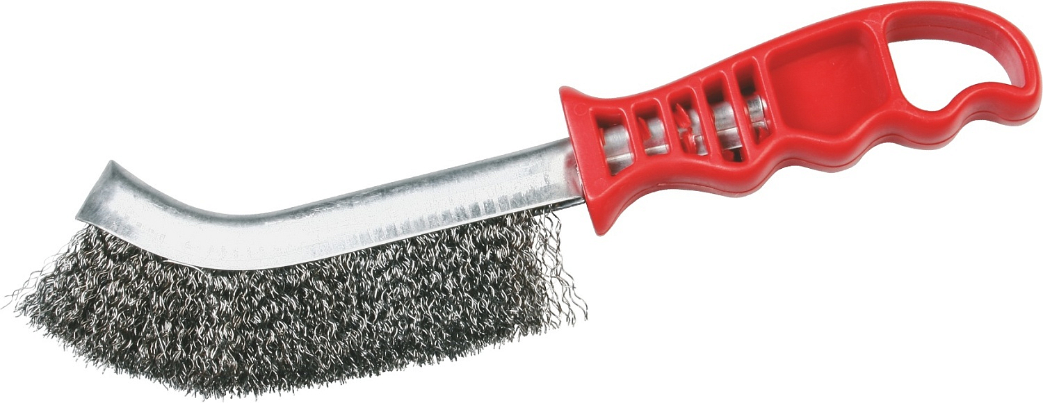 Gewellter Stahl Draht. Drahtbürsten werden verwendet, um grobe Verunreinigungen von der Oberfläche zu entfernen. Sie sind mit Stahl Draht bestückt.Mehr lesen