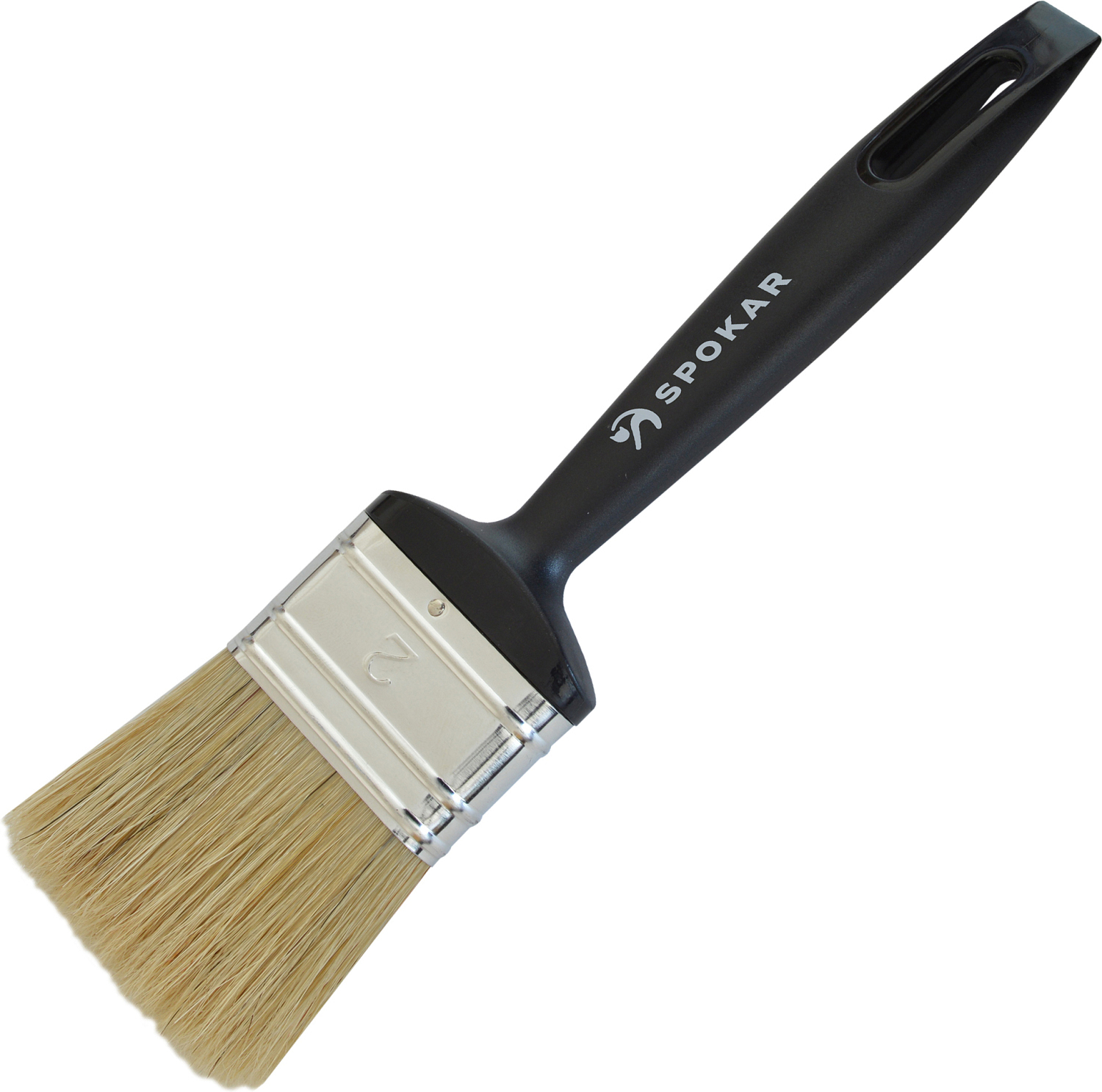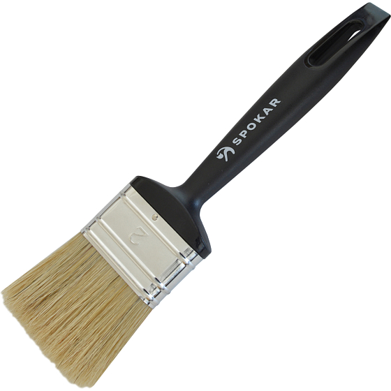Kunststoffgriff, der im Vergleich zum Pinselkopf für eine bessere Handhabung gedreht ist, Griffende in Form eines Spatels - Schabers, saubere Borsten. Geeignet für alle Arten von Beschichtungsstoffen. Ausgezeichneter Farbaufnahmeeigenschaften, absolut gleichmäßige Farbübertragung auf die Oberfläche. Lange Lebensdauer, einfache Reinigung. Hervorragende Endoberfläche.