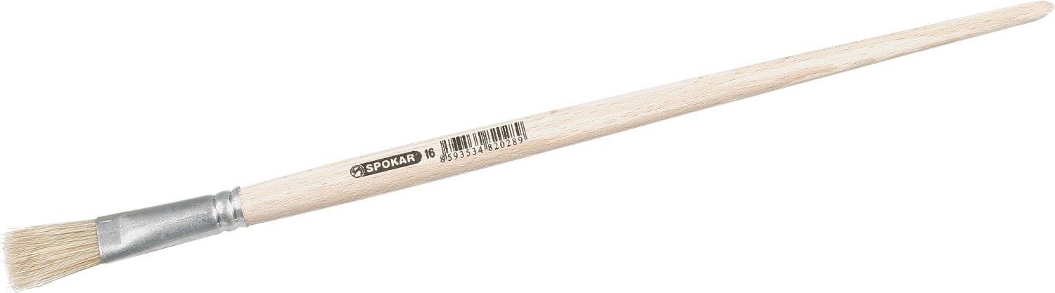 Spokar Lyon ist ein flacher Pinsel mit reinen Naturhaaren und einem unlackierten Holzgriff.