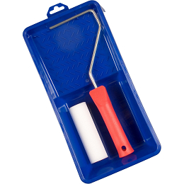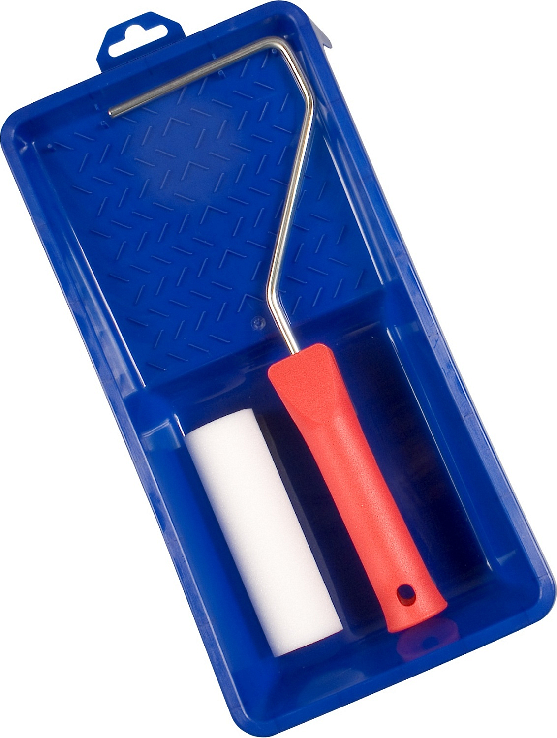 Set aus Farbroller, Halter und Wanne. Moltopren ist für weniger anspruchsvolle Malerarbeiten, für wasserverdünnbare Beschichtungen gedacht; mit begrenzter Lebensdauer kann er auch für synthetische Farben und Lacke verwendet werden. Nicht für aggressive organische Lösungsmittel verwenden. Er erzeugt eine feine Struktur auf der Oberfläche spezieller Beschichtungen.
