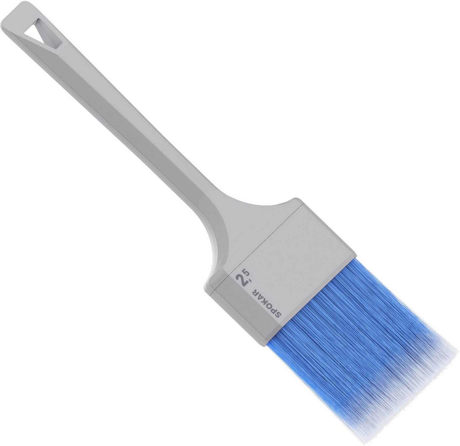 Spokar Nova akryl flach Pinsel bestückt mit synthetischen Fasern mit sehr fein chemisch zugespitzten Spitzen. Entwickelt für das Auftragen von wasserverdünnbaren Beschichtungsstoffen mittlerer und höherer Viskosität, die sich zu einer gleichmäßigen Schicht mit sehr glatter Oberfläche verteilen lassen.