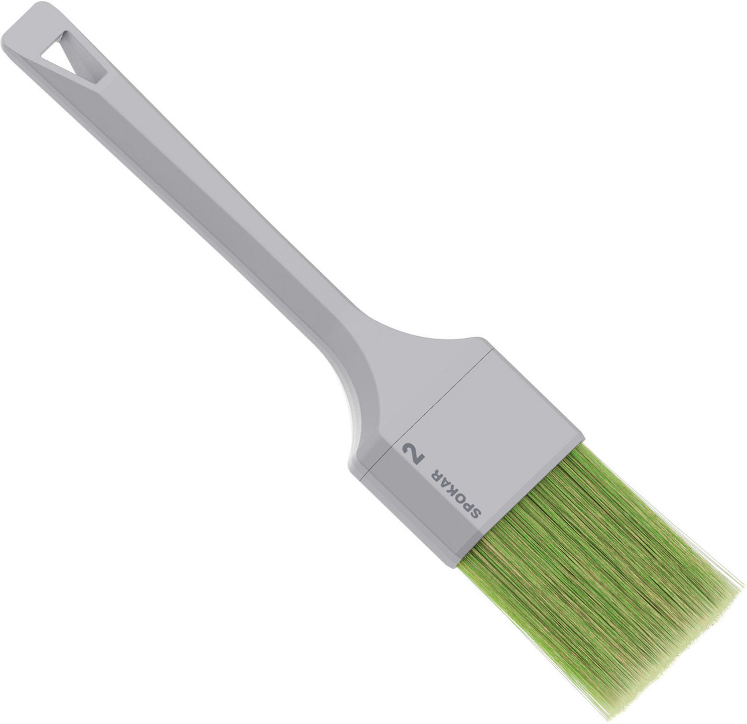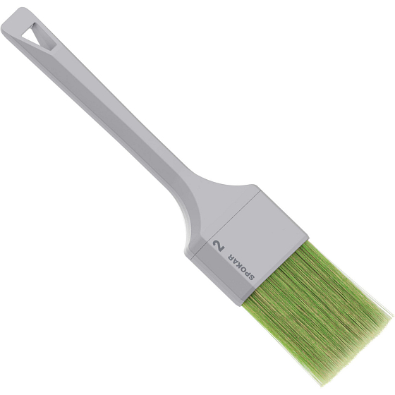 Spokar Nova Lasur flacher Pinsel bestückt mit einer Mischung aus synthetischen Fasern mit einem Anteil an Fasern mit X-Profil für gute Saugfähigkeit, die spitzen Enden für eine qualitativ hochwertige Verarbeitung. Die Fasern sind steifer, was eine effektive Einarbeitung der Lasur in die Holzoberfläche unterstützt.