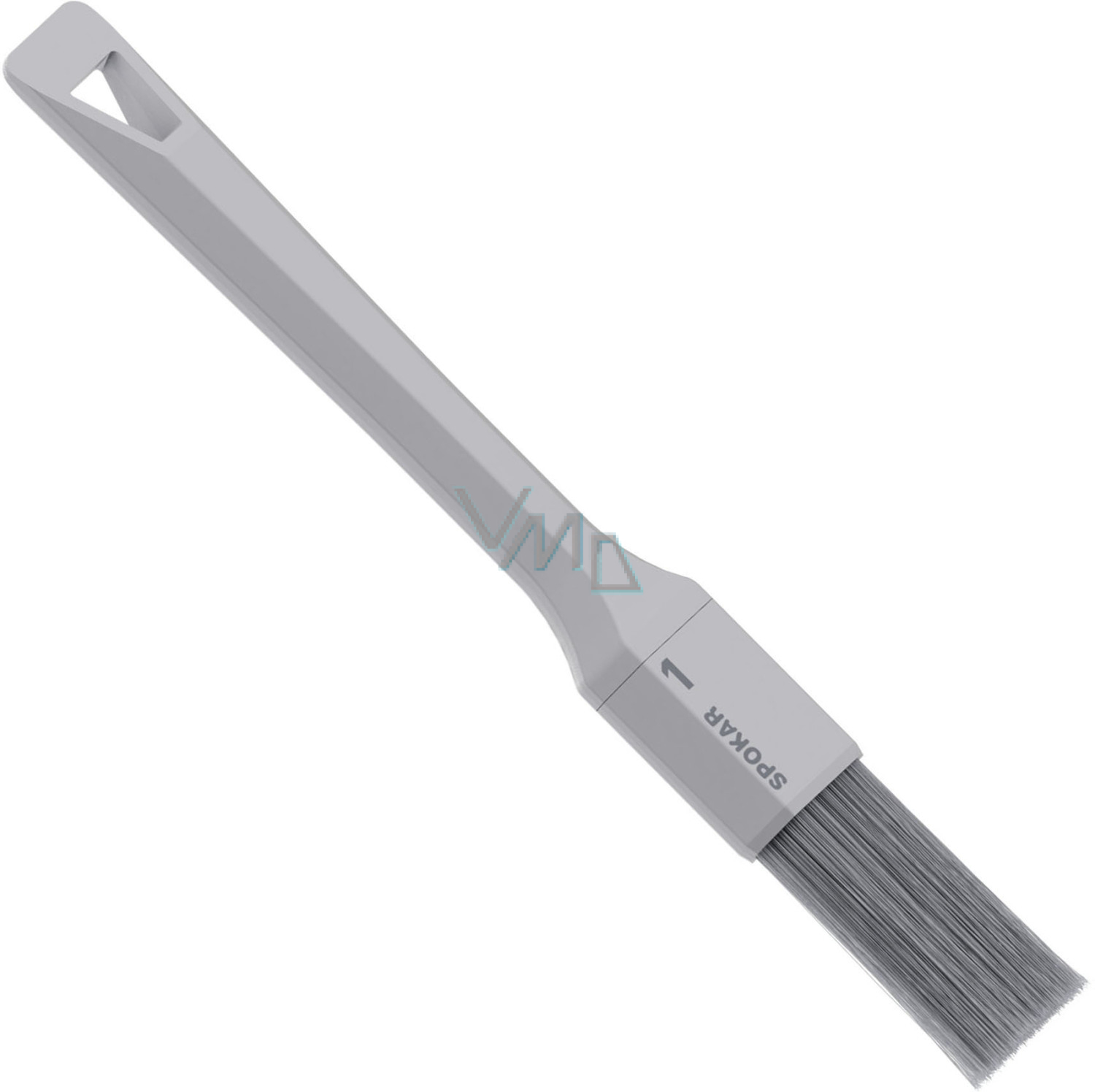 Spokar Pinsel Nova Uni ausgestattet mit hohlen synthetischen Fasern EVO mit konischem Verlauf über die gesamte Länge und sehr fein gespaltenen Enden. Diese Fasern nehmen die Farbe ausgezeichnet auf und verteilen sie effektiv zu einer völlig gleichmäßigen, glatten, kompakten Schicht. Sie ermöglichen hervorragende Ergebnisse bei der Anwendung von Beschichtungsmaterialien aller Arten und Konsistenzen.