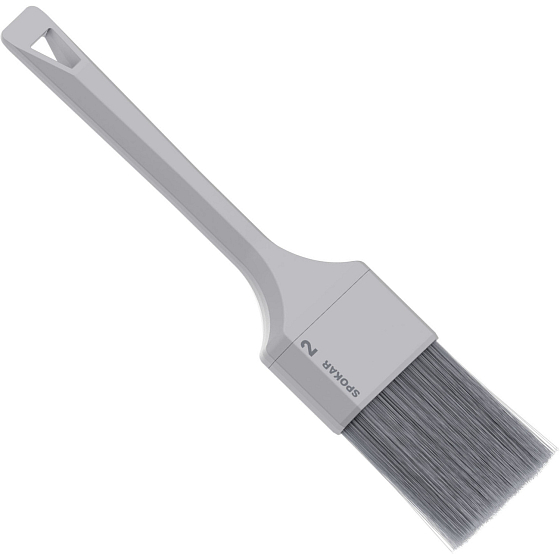 Spokar Pinsel Nova Uni bestückt mit hohlen synthetischen Faser EVO in konischer Form über die gesamte Länge und mit sehr fein gespaltenen Enden. Diese Fasern nehmen die Farbe hervorragend auf und streichen sie effektiv zu einer völlig gleichmäßigen glatten kompakten Schicht. Sie ermöglichen hervorragende Ergebnisse bei der Anwendung von Beschichtungsmaterialien aller Art und Konsistenzen.