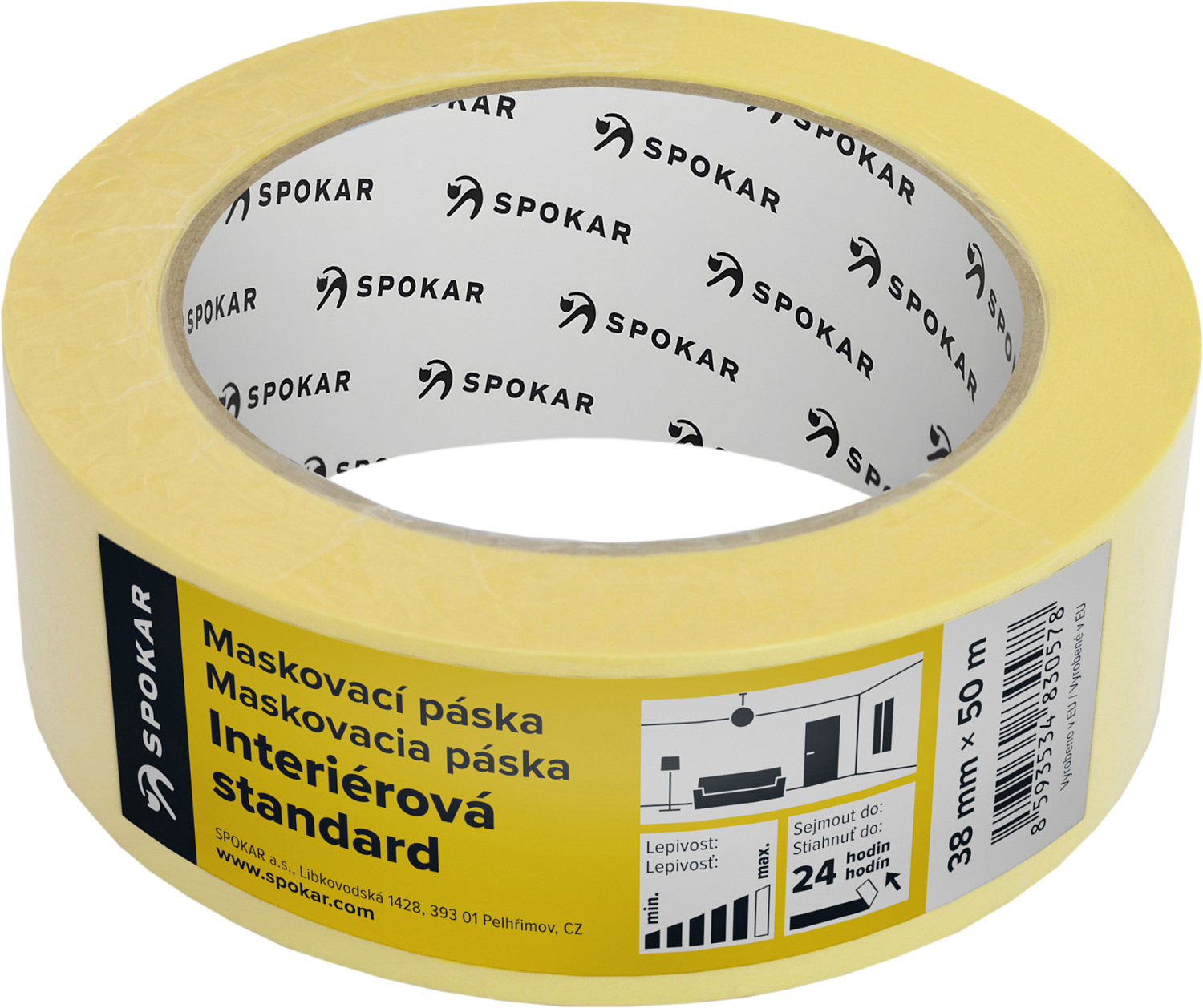 Spokar Papier-Abdeckband bis 60 °C Leicht kreppiges Papier, mittlere Klebkraft, für den Innenbereich bis 60°C, maximale Klebezeit 24 Stunden. 25 mm × 50 mm.