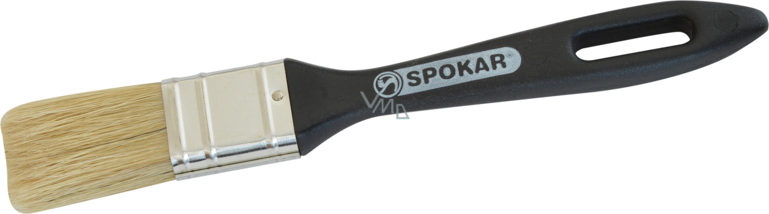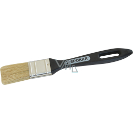 Geeignet für alle Arten von Beschichtungsstoffen. Der Kunststoffgriff ist gedreht im Vergleich zum Pinselkopf für besseren Halt, das Ende des Griffs in Form eines Spachtels - Rakel, reine Borste. Die Fasern sind eine Mischung aus Borsten und hohlen synthetischen Fasern.