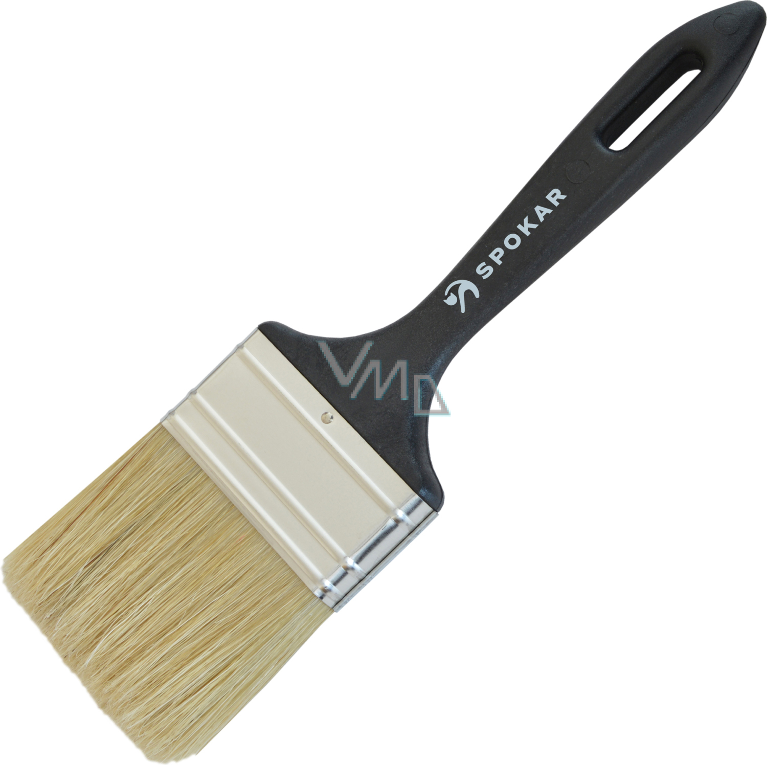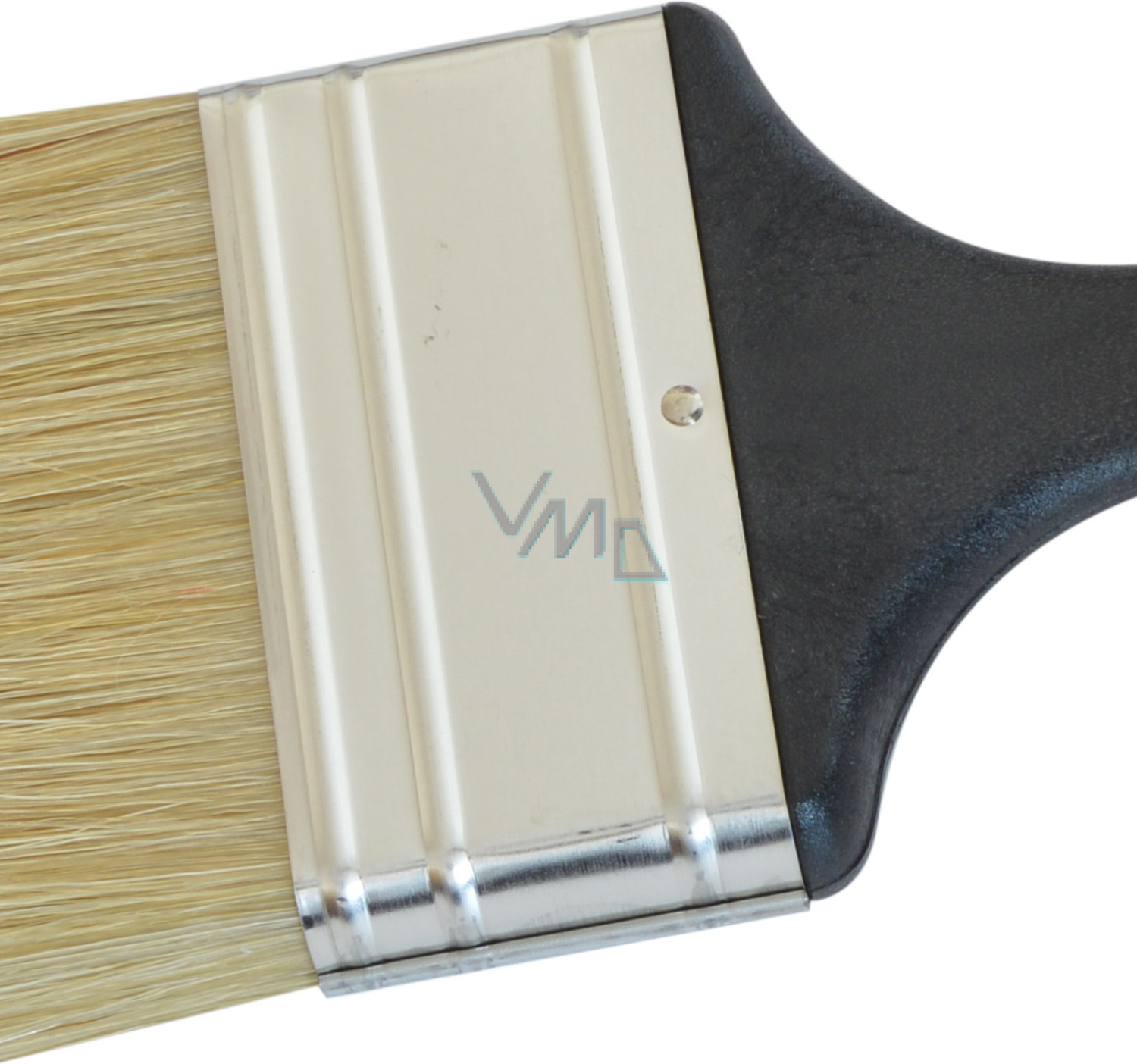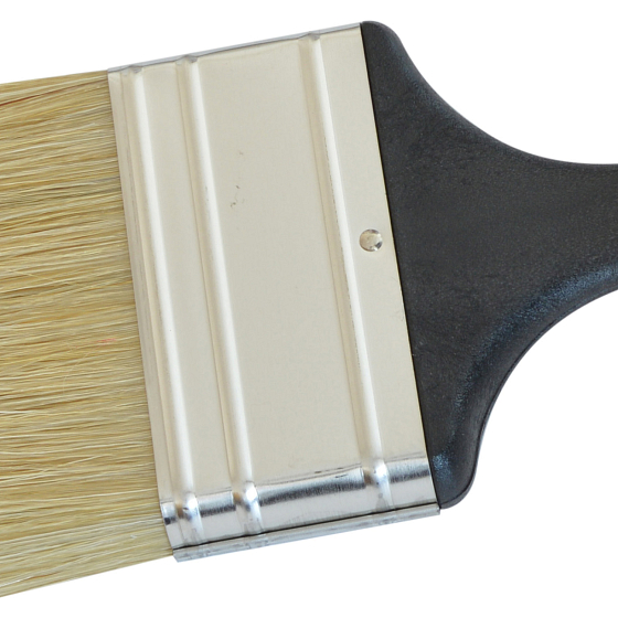 Geeignet für alle Arten von Beschichtungsmaterialien. Der Kunststoffgriff ist im Vergleich zum Kopf des Pinsels gedreht, um eine bessere Handhabung zu ermöglichen, das Ende des Griffs hat die Form eines Spachtels - einer Spachtel, reines Borstenmaterial. Die Fasern bestehen aus einer Mischung aus Borsten und hohlen synthetischen Fasern.