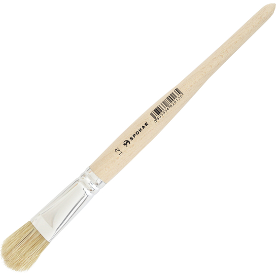 Spokar zapanty Pinsel mit reinen Naturborsten und einem unbeschichteten Holzgriff. Der Pinsel mit Naturborsten ist für alle Arten von Beschichtungsmaterialien geeignet. Aufgrund seiner Form ist der Pinsel besonders für detailliertere Anstriche oder für das Streichen kleinerer Flächen geeignet.