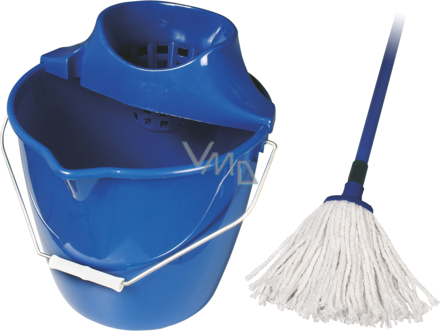 Das Reinigungsset SPOKAR besteht aus einem runden Eimer mit 10 Litern, einem Wringer, einem Metallstiel und einem Baumwollmopp. Das Set hat die Farbe Blau. Geeignet für die Reinigung nicht nur im Haushalt.