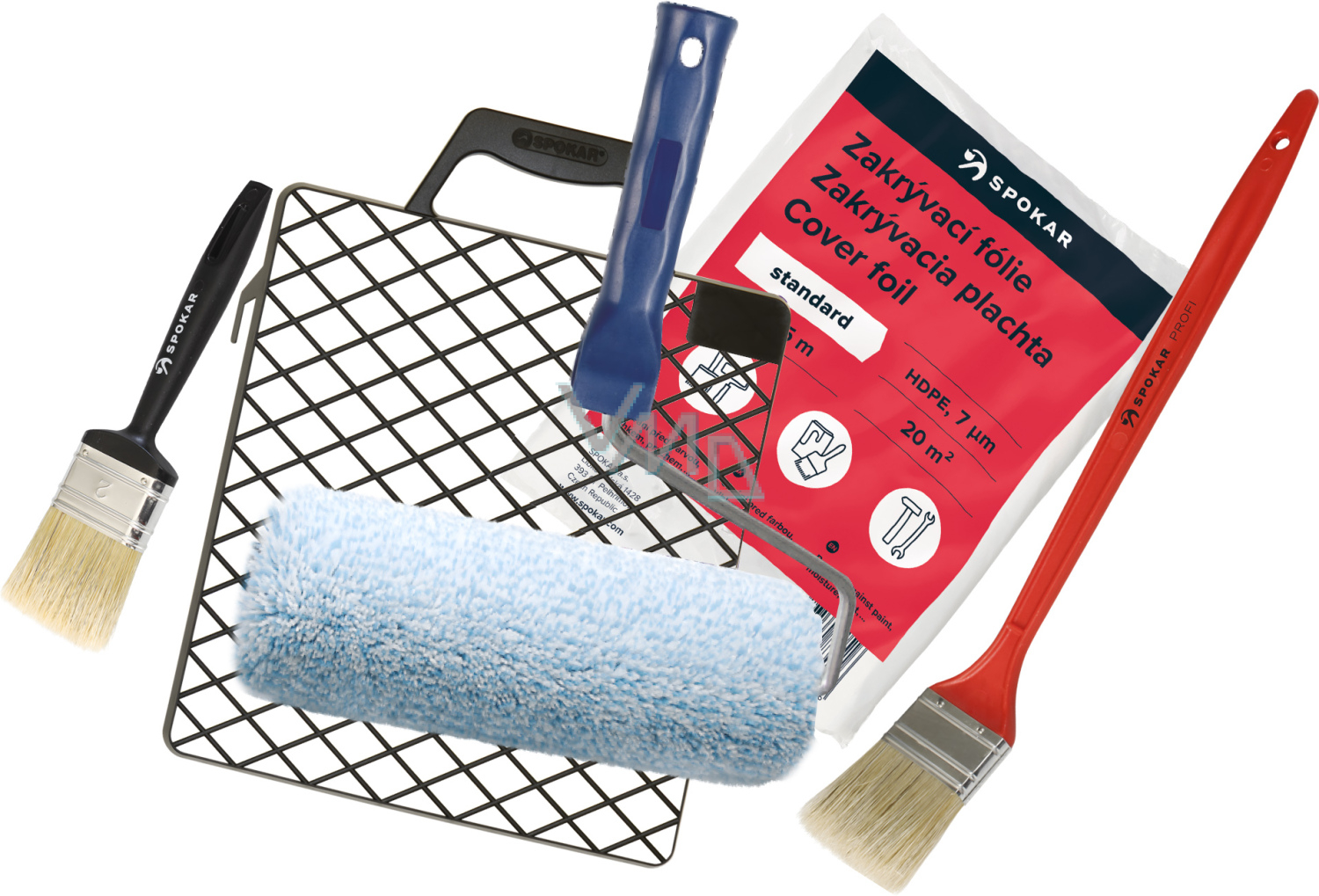 Eigenschaften Spokar Uni blauer Melange Set Roller zum Streichen mit Halter, Gitter, Folie, Pinsel und Randroller: