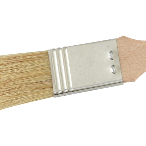 100% natürliche Borste, zum Glätten der Oberfläche der Beschichtung. Der Glättpinsel ist ein spezieller, sehr flacher Pinsel, der die Beschichtungen sanft glättet. Er findet insbesondere Anwendung beim Lasieren, d.h. beim Erzeugen einer Holzstruktur-Imitation auf verschiedenen Untergrundmaterialien, zum Beispiel auf Möbeln, Türen, Putz usw.