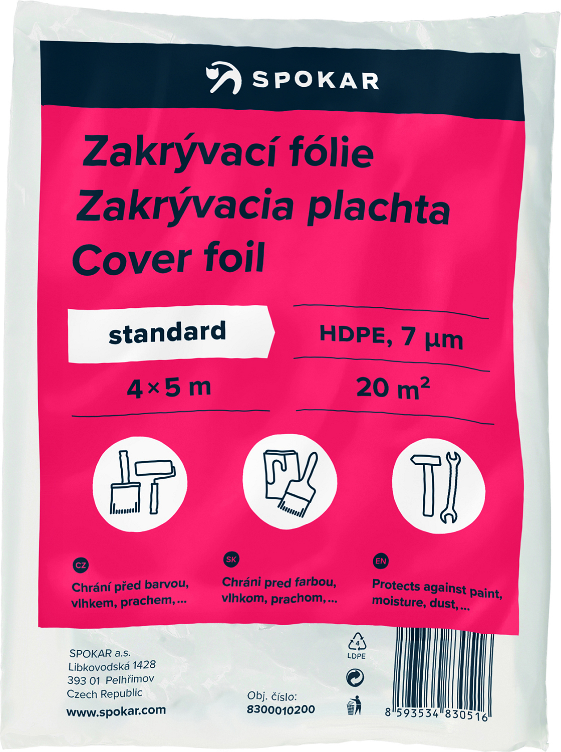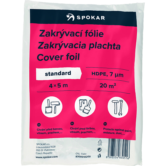 Spokar Abdeckfolie Standard, 4 x 5m 7 µm HDPE. Abdeckfolien werden zum Abdecken von Böden und Möbeln verwendet. Sie schützen beim Malen vor Farbe, Feuchtigkeit und Staub.