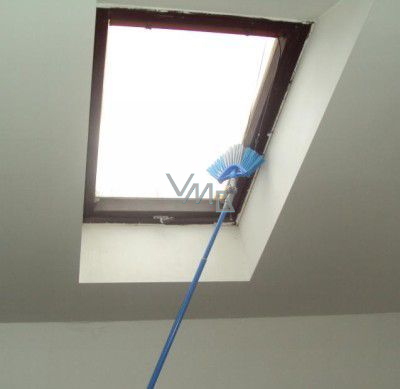 Speciálně tvarovaná hlava smetáku do trojúhelníku se dobře přizpůsobí stěně a zapadne přesně do rohu zdi a smete tak nejen všechny pavučiny, ale i ostatní nežádoucí nečistoty.