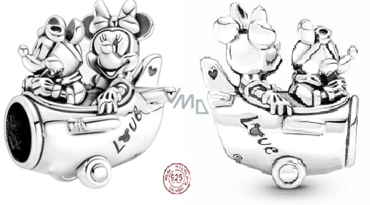 Vydejte se na romantické dobrodružství s Mickey Mousem a Minnie Disney! Mickey Mouse a Minnie Mouse má vyryto „Láska“ a představuje ikonický pár Disney letící v letadle do šťastné budoucnosti. Noste kouzlo na oslavu věčné lásky a přidejte do své sbírky šperků trochu dobrodružství.