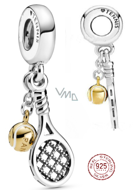Sterling Silber 925 Tennisschläger und Ball, 2in1 Sportarmband Anhänger