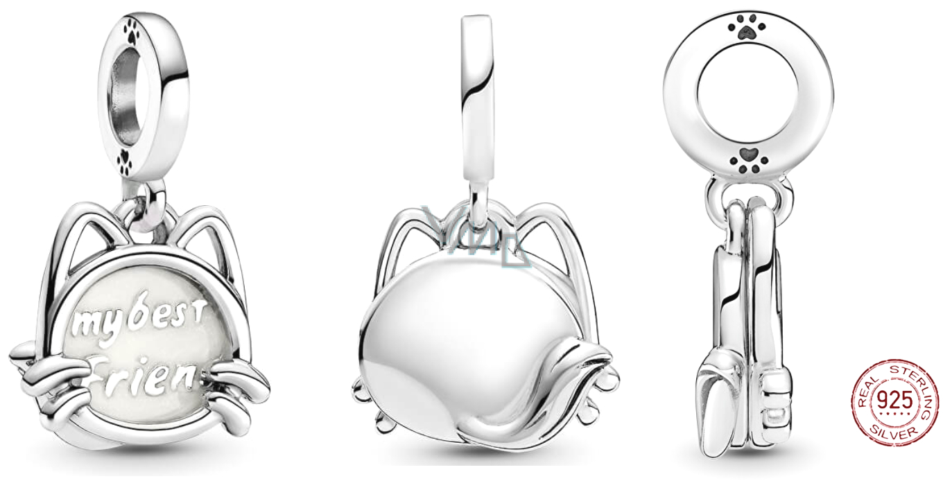 Sterling Silber 925 Mein Kätzchen - mein bester Freund, 2in1-Anhänger für Haustier-Armband