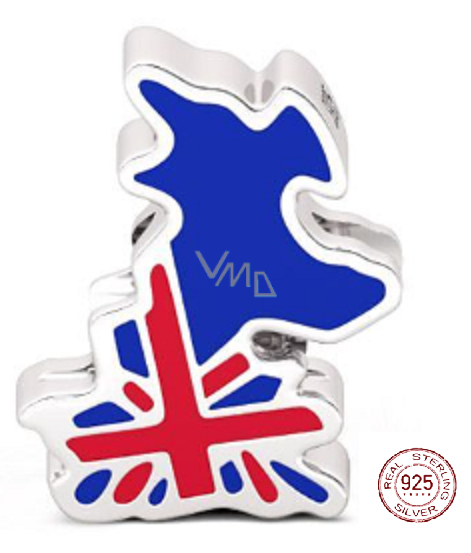 Charm Sterlingsilber 925 England Flagge - Karte, Perle für Reise-Armband