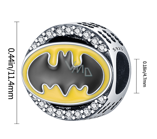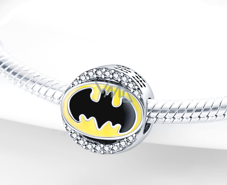 Sterling Silber 925 Batman mit kubischen Zirkonen, Perle für Armband