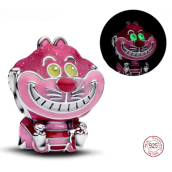 Charm Sterlingové stříbro 925 Disney Alenka v říši divů, růžová kočka s úsměvem svítí ve tmě, korálek na náramek film