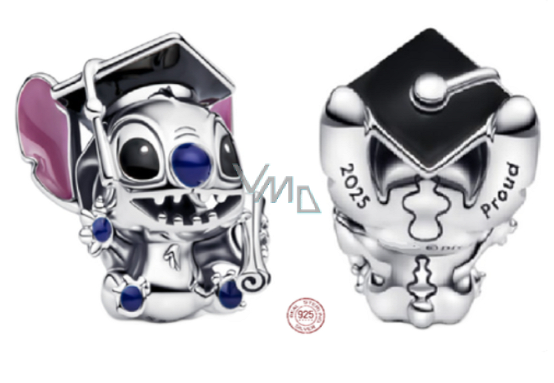 Oslavte výjimečný milník s tímto roztomilým stříbrným korálkem 925 s motivem Disney Lilo a Stitch, navrženým speciálně pro absolventy roku 2025. Tento detailně propracovaný přívěsek k promoci zachycuje Stitche v absolventské čepici, připraveného dobýt svět – s humorem, odvahou a špetkou chaosu.