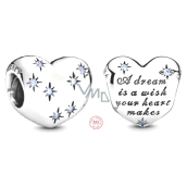 Všichni potřebujeme připomenout, že sny se mohou stát skutečností. Tento korálek je ve tvaru srdce, na kterém jsou vyryta slova "Sen je přání tvého srdce." Stříbrný přívěsek pro náramek je inspirován Disney Popelkou a doplněn pastelově modrými kubickými Zirkony pro jemný třpyt. Noste nebo sdílejte sentimentální styl, abyste nasměrovali jeho význam, nebo jej darujte někomu zvláštnímu, abyste mu ukázali, že ho znáte.