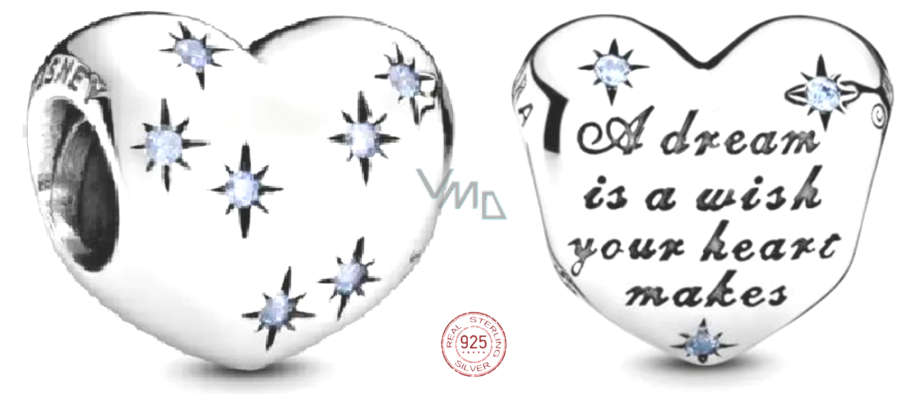 Všichni potřebujeme připomenout, že sny se mohou stát skutečností. Tento korálek je ve tvaru srdce, na kterém jsou vyryta slova "Sen je přání tvého srdce." Stříbrný přívěsek pro náramek je inspirován Disney Popelkou a doplněn pastelově modrými kubickými Zirkony pro jemný třpyt. Noste nebo sdílejte sentimentální styl, abyste nasměrovali jeho význam, nebo jej darujte někomu zvláštnímu, abyste mu ukázali, že ho znáte.