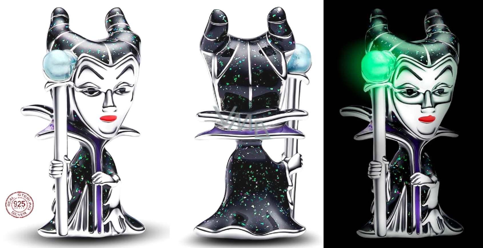 Charm Sterlingsilber 925 Disney Dornröschen Maleficent, leuchtende Perle für Märchenarmband