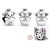 Tento roztomilý Kaktusový korálek Free Hugs - Objetí zdarma, dokazuje, že ne všechny kaktusy musí být ostré a špičaté. Tento přívěsek ze sterlingového stříbra, inspirovaný věcmi, které milujete a pro které jste nadšení, obsahuje rozkošný usměvavý kaktus v malém květináči s rytinou „Free hugs“. Má také růžový květ na temeni hlavy a texturu hrotů. Noste ji, abyste ukázali světu svou hravou stránku a jak moc rádi objímáte.
