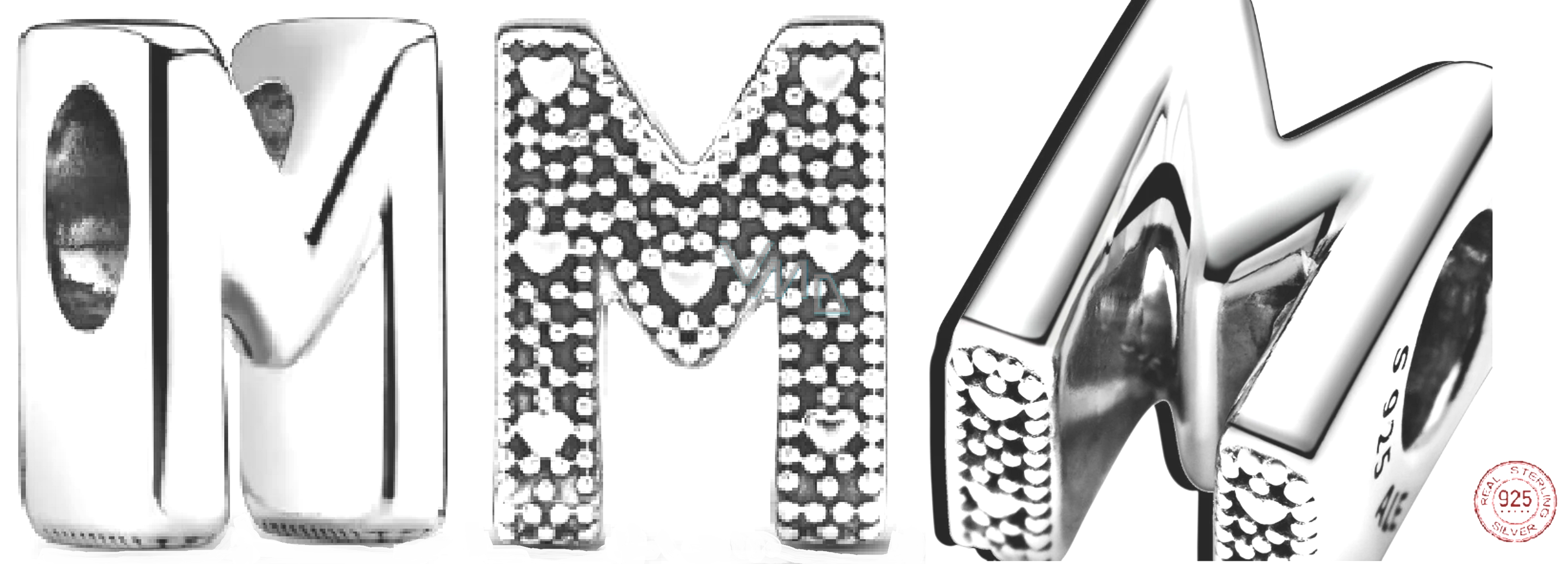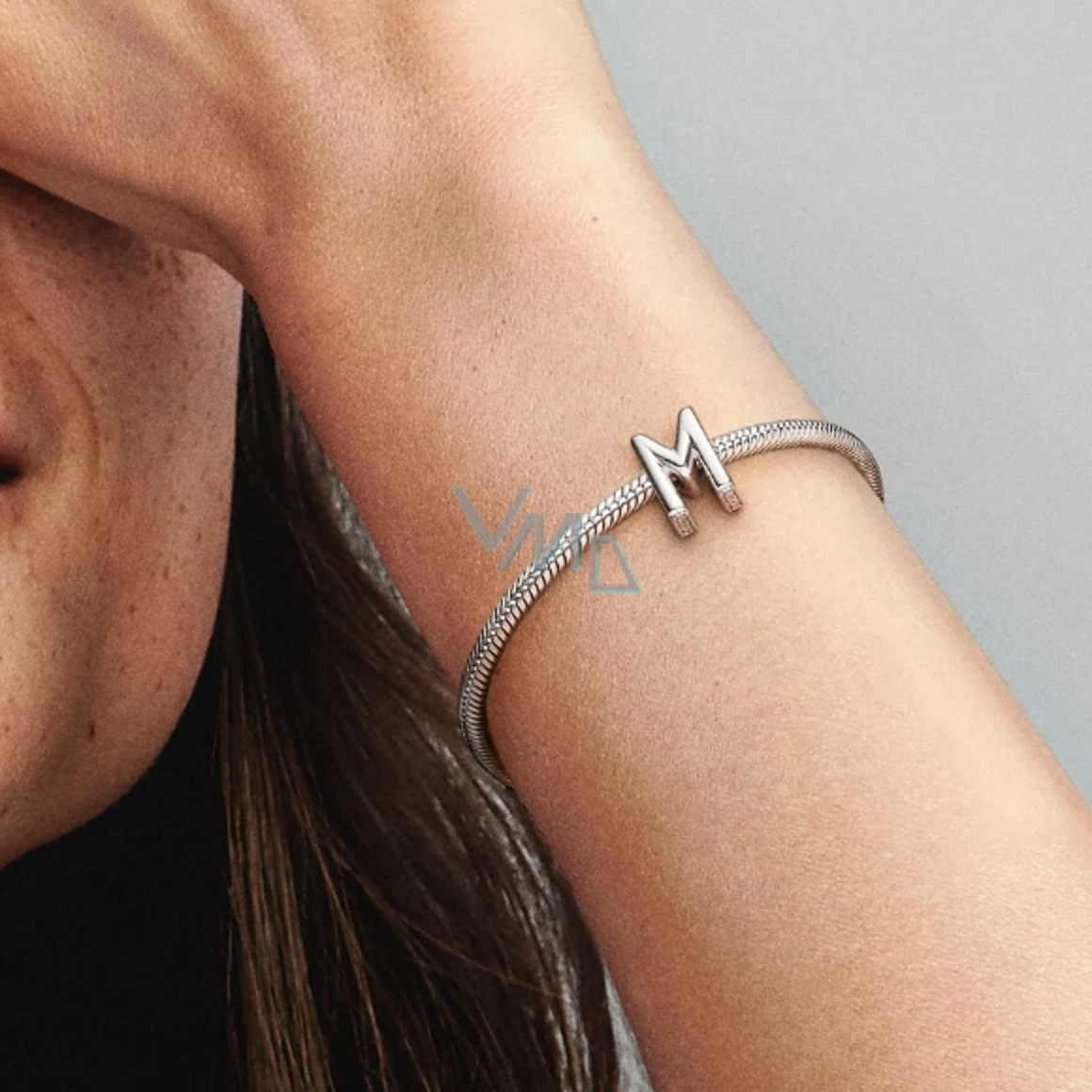 Vyprávějte svůj příběh prostřednictvím přívěsků inspirovaných písmeny abecedy, která vám umožní vytvořit slova, která pro vás znamenají nejvíce. Přidejte smysluplné iniciály na svůj náramek, nebo vytvořte osobní zprávu s písmenem M. Oboustranný přívěsek vyrobený ze stříbra 925 je na přední straně leštěný a na zadní straně má vyražená srdce a koule. Přidejte tento šperk do své sbírky kouzel nebo jej darujte někomu, kdo má zvláštní spojení s tímto dopisem.