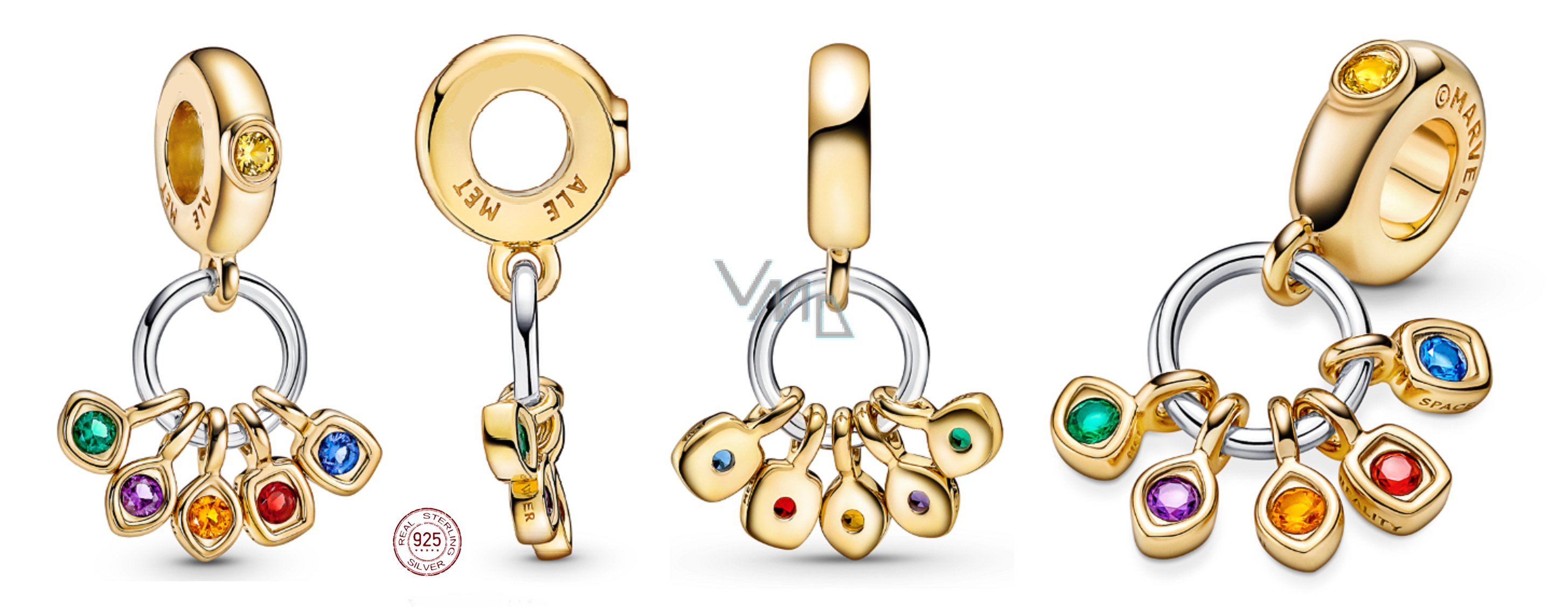 Ovládněte sílu kamenů nekonečna s přívěskem Marvel The Avengers Kameny nekonečna. Přívěsek je ze stříbra s pokovením zlatem zdobí barevné krystaly vyráběné ručně, které představují nejžádanější kameny. Každý krystal je opatřený rytinou s jeho významem. Přidejte tento přívěsek a další své oblíbené hrdiny na svůj náramek.