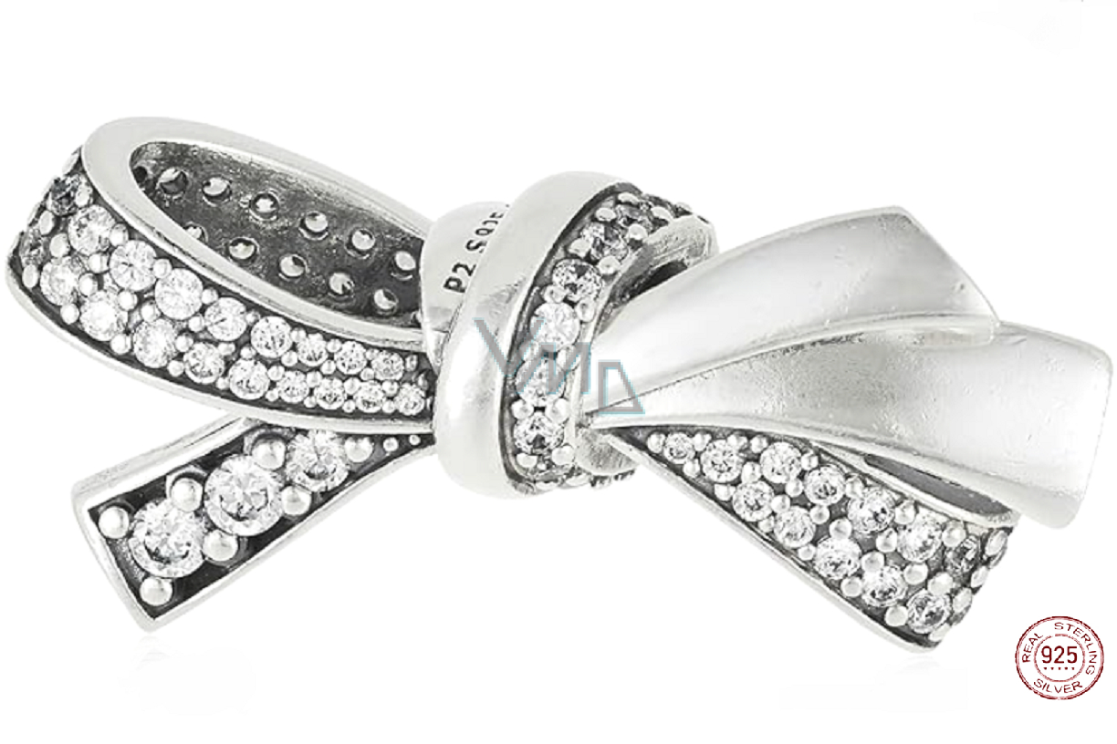 Charm Sterling Silber 925 Schleife mit kubischen Zirkonia, Perle für Armband Symbol