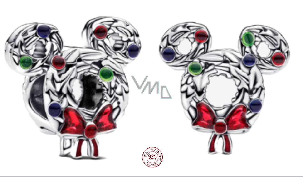 Charm Sterlingové stříbro 925 Mickey vánoční věnec, korálek na náramek vánoce