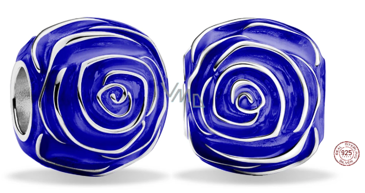 Charm Sterlingsilber 925 Blaue Rose in Blüte, Perle für Armband Natur