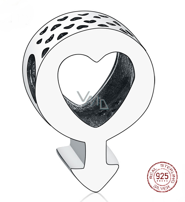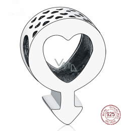 Charm Sterling Silber 925 Männlich Symbol, Herz, Perle auf Armband Symbol