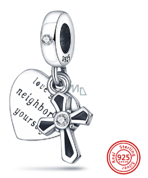 Sterling Silber 925 Religiöse Charms Kreuz und Namensschild 2in1, Anhänger für Armband
