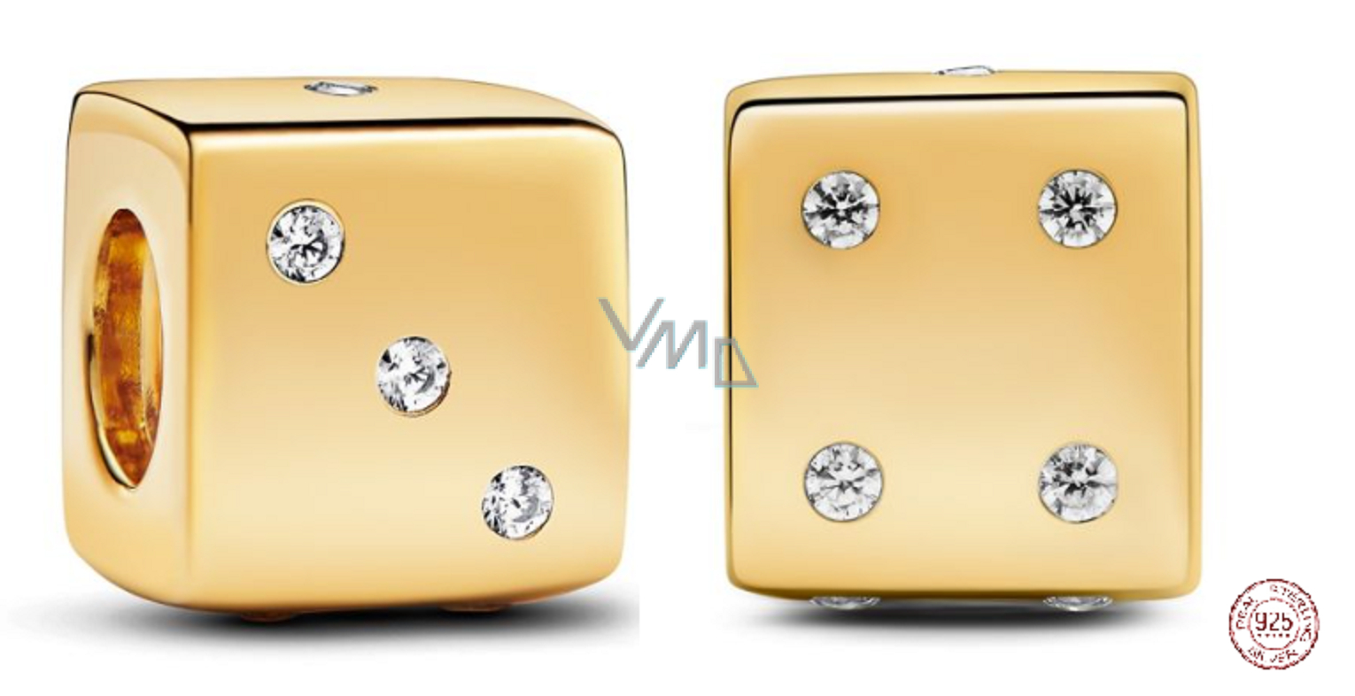 Charme Sterling Silber 925 Vergoldet Würfel + künstliche Zirkon, Perle auf Armband Symbol