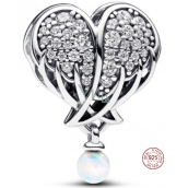 Charms Sterling Silber 925 Funkelnde Engelsflügel als Herz, Perle am Armband Symbol