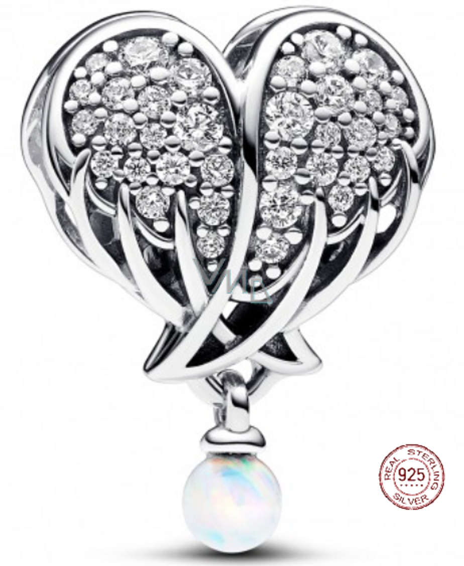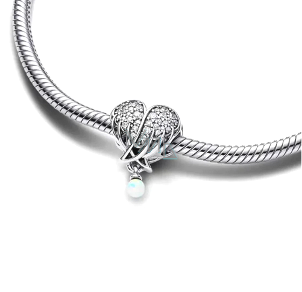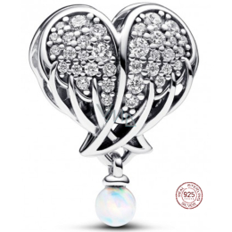 Charms Sterling Silber 925 Funkelnde Engelsflügel als Herz, Perle am Armband Symbol