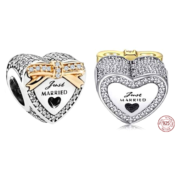 Charme Sterling Silber 925 Newlyweds Herz Perle auf Liebe Armband