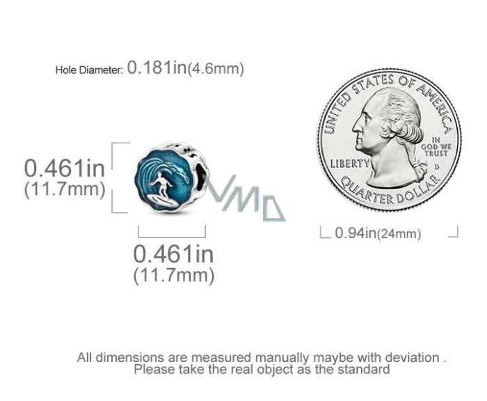 Krásný stříbrný přívěšek vhodný pro surfaře. Mějte na paměti, že korálky nejsou úplně identické v důsledku ruční práce. Tento okouzlující zlatý korálek je perfektním dárkem pro Vás i Vaše blízké. Objednejte nyní a vytvořte si vlastní nezapomenutelné okamžiky, které si budete připomínat celý život. Buďte originální, buďte jedinečná!
