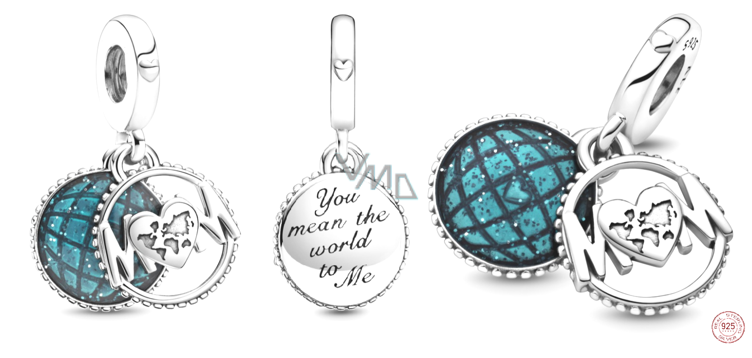 Dejte mamince dokonalý dárek, kterým vyjádříte svou zbožnost. Se stříbrným šperkem najdete perfektní dárek pro vaši maminku. Dejte dárek, který řekne, jak moc ji milujete a jak jste vděční. Korálek znázorňuje na jednom přívěsku třpytivou zeměkouli a na druhém slovo Mum.