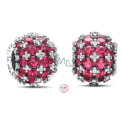 Charm Sterling Silber 925 Glitzernde runde rote Charm Pavé, Perle auf Armband Symbol