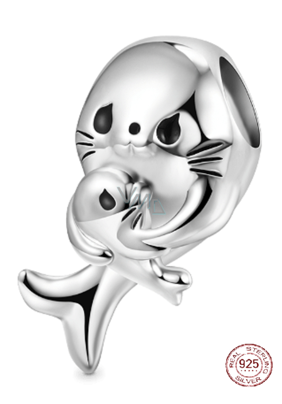 Tuleni jsou šelmy přizpůsobené životu ve vodě. Z 18 současných druhů pět obývá pobřeží jižních moří, ostatní žijí na severní polokouli. Spolu s delfíny považováni za nejlepší plavce mezi savci, ale platí za to daň na souši: mají kratší přední končetiny a zadní nemohou jako lachtani podsunout pod tělo. A tak se na rozdíl od lachtanů na břehu jen neohrabaně plazí. Přívěsek tuleně s miminkem je vyroben ze sterlingového stříbra a doplněn smaltem. Darujte maminkám nebo dětem co mají rádi vodu a rádi se koupají.
