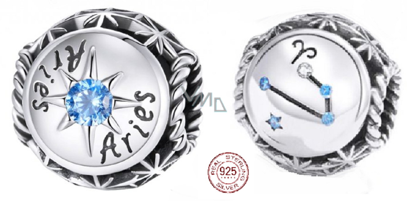 Charme Sterling Silber 925 Sternzeichen, Zirkonia Widder, Perle für Armband