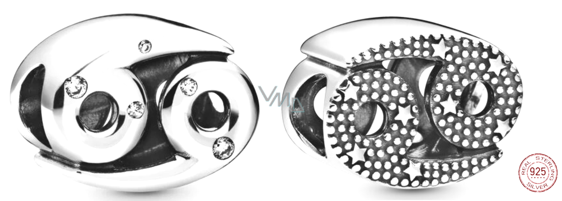 Nechte zazářit své znamení Raka s tímto přívěskem se znamením zvěrokruhu ze stříbra se třpytivými detaily. Lidé narození ve znamení Raka jsou vysoce intuitivní a jejich psychické schopnosti se projevují na fyzické úrovni. Přívěsek se znamením Raka má dvě různé strany: jednu leštěnou s kubickými zirkoniemi a druhou s kuličkami a hvězdičkami pro extra nebeský dojem. Noste ho jako připomenutí silných stránek vašeho hvězdného znamení, nebo ho věnujte jako dárek nějaké osobě ve znamení Raka, která miluje přívěsky.