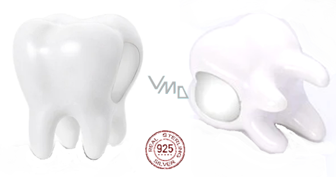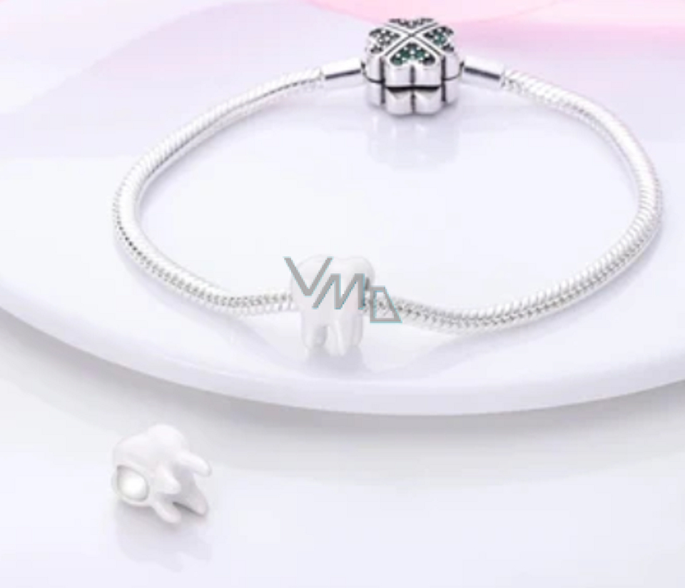 Přívěsek 925 Sterling Silver s roztomilým malým zubem, dekorovaný s hladkou bílou sklovinou. Molární zuby symbolizují vytrvalost, moudrost a pokrok. Vyprávějte svůj příběh s každým přívěskem a vytvořte náramek, který odráží, kdo jste. Tvůj styl. Váš náramek. Tvůj příběh.