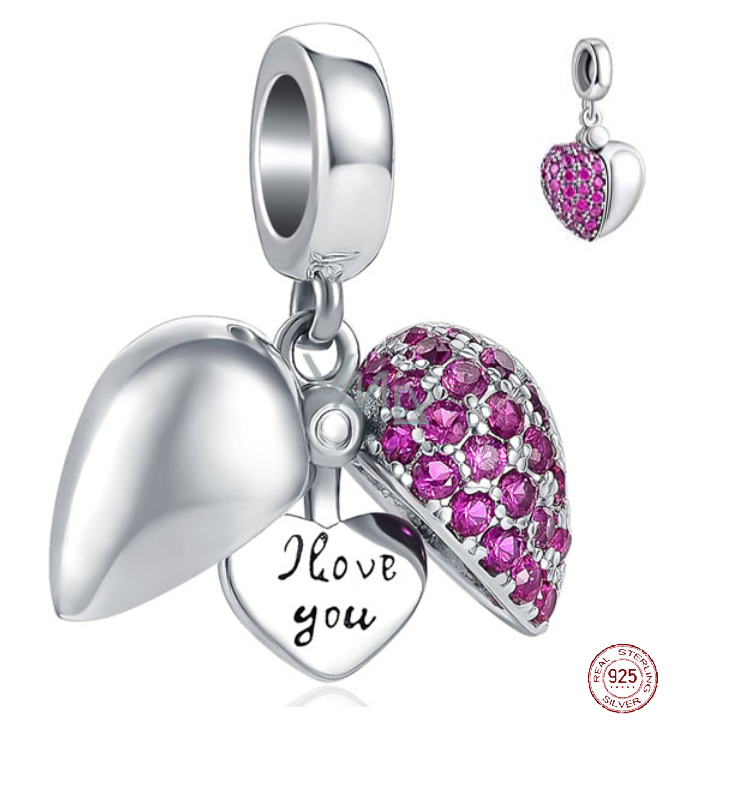 Charm Sterlingové stříbro 925 Srdce 2v1 gravírovatelná lupa srdce, přívěsek na náramek láska25.61 EUR