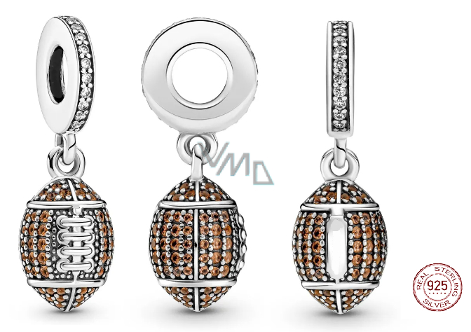 Předveďte svou lásku k americkému fotbalu. Tento přívěsek - ručně vyrobený ze sterlingového stříbra, obsahuje mikro hnědé a čiré kubické Zirkony, které tomuto přívěsku dodávají realistický vzhled a jiskřivý styl. Tento přívěsek je pro milovníky amerického fotbalu – noste ho v den zápasu i mimo něj.